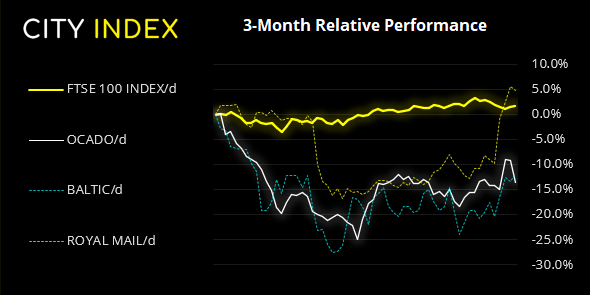 • + 6.84%-Ocado Group PLC(OCDO.L)